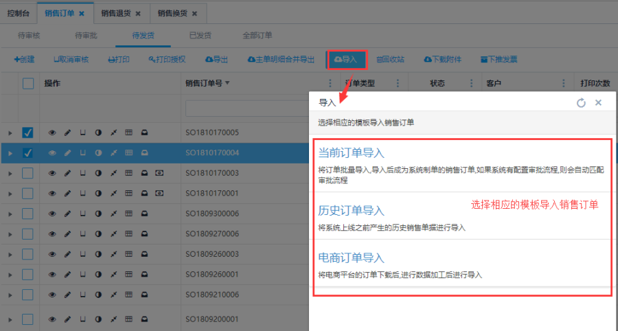 当销售订单数量多的时候可导入数据并且批量创建销售订单。
