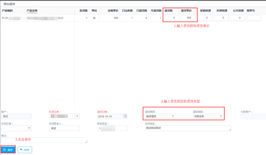 - 退货产品数量不能大于来源销售订单的销售数量;