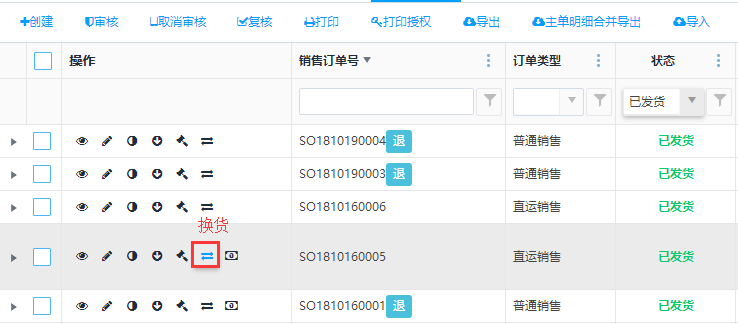 换货针对的是【已发货】【已完成】状态下的销售订单进行换货操作。