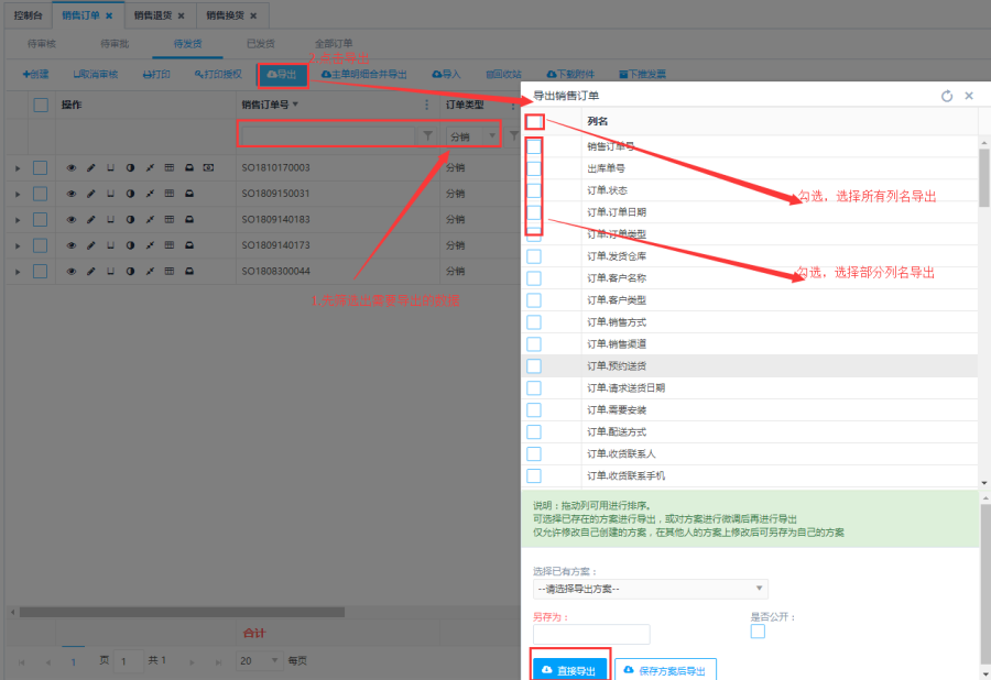 - 3.导出时选择需要导出的列名字段进行导出,导出后的文档只显示选择的列名数据。