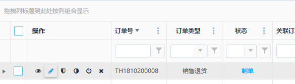 制单状态下的销售退货单,可点击操作栏中的<编辑>按钮,可对销售退货单进行编辑操作.