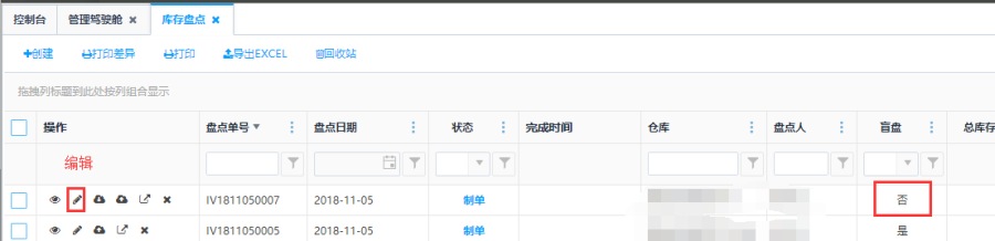 第一步:点击<编辑>进入盘点单编辑界面。
