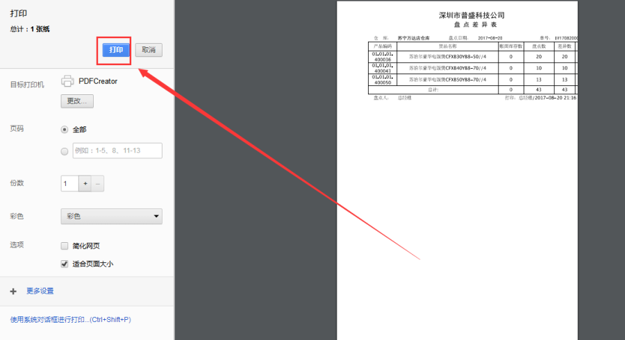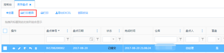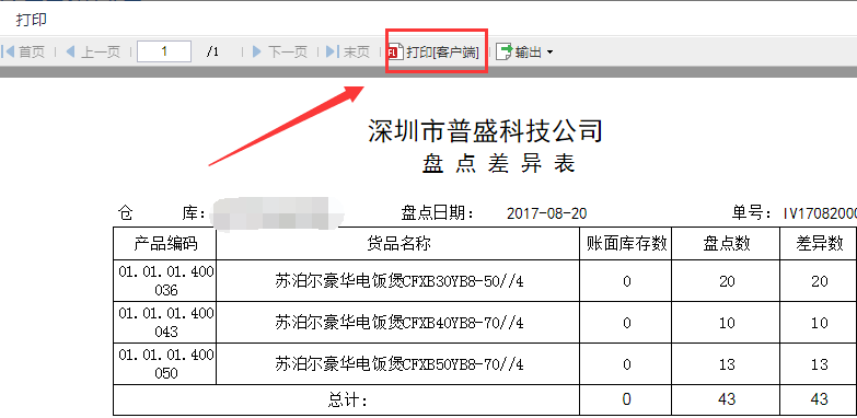 盘点单结果和原库存的差异数据可以打印出纸质差异单。