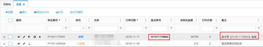 - 盘点单审核后就不能操作了,也不能取消审核,操作之前需核对好盘点数据。