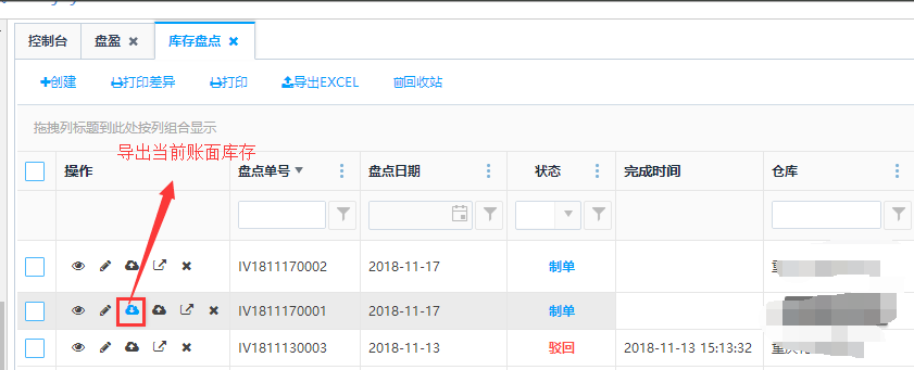 - 同一个仓库只能存在一个未完成的盘点单,即如果A仓库有不是【已审核】状态的盘点单,则不能对这个仓库再次创建盘点单。