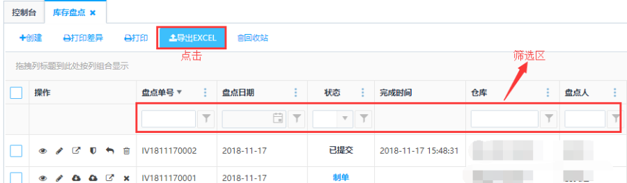 点击列表上方的<导出EXCEL>按钮可导出库存盘点列表内容。