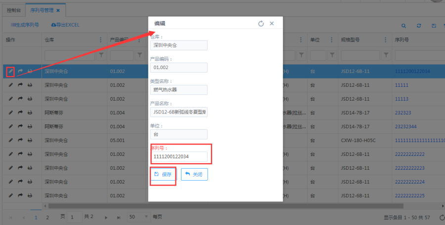 点击<编辑>弹出编辑页面,可对序列号进行修改,修改后点击保存。