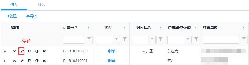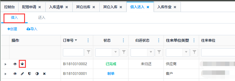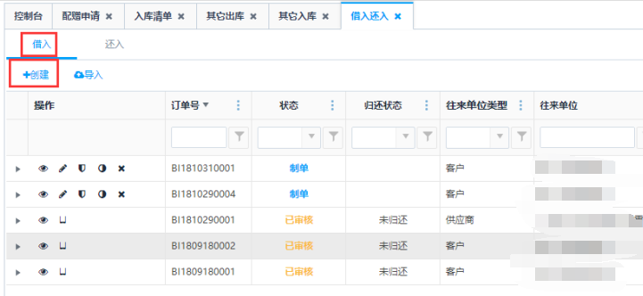 - 可以创建借入,还入单需要通过下推借出还出单生成,不能手动创建。