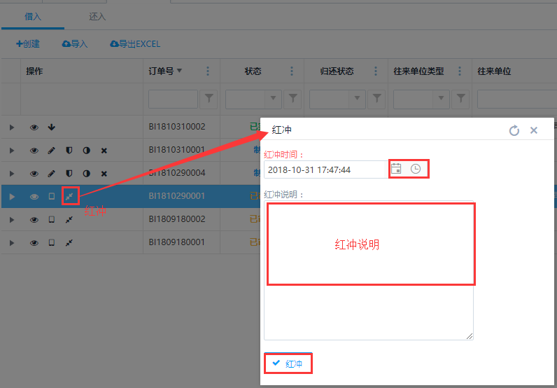 如果在系统中使用对账功能,当出现跨越的审核状态的借入还入单需要修改的时候,只能通过红冲的方式来处理,操作红冲时生成一个负金额的借入还入单进行冲抵,红冲之后再做一个借入还入单即可。
