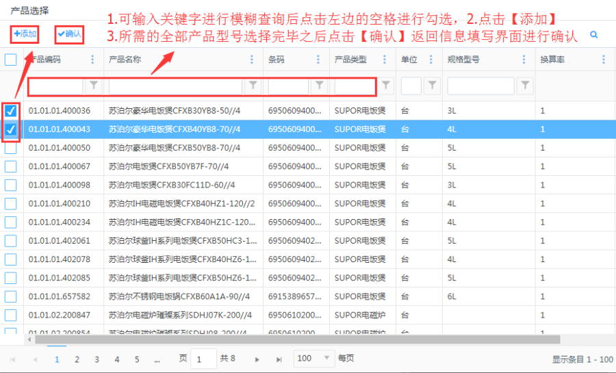 第三步:点击<添加>之后在弹出框中选择产品型号: