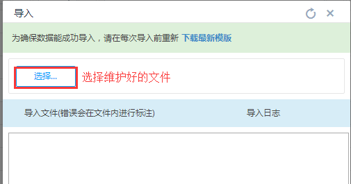 第一步:点击<导入>按钮,弹出导入界面:然后下载最新模板后按模板格式进行数据维护