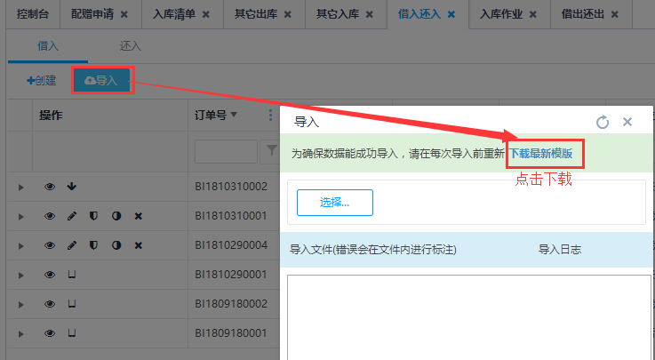 当借入还入单数量多的时候可导入数据批量创建订单。