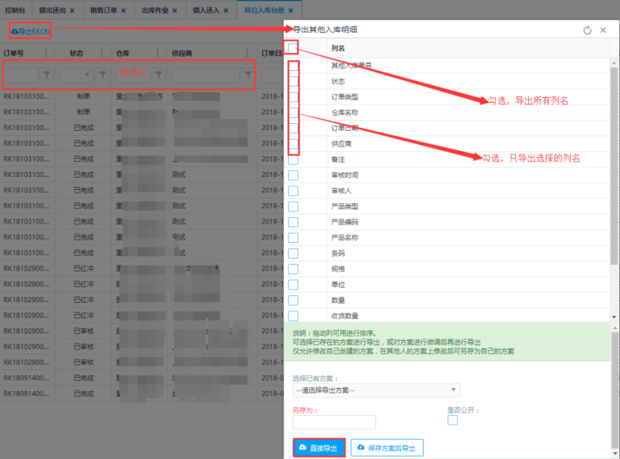 - 3.导出时选择需要导出的列名字段进行导出,导出后的文档只显示选择的列名数据。