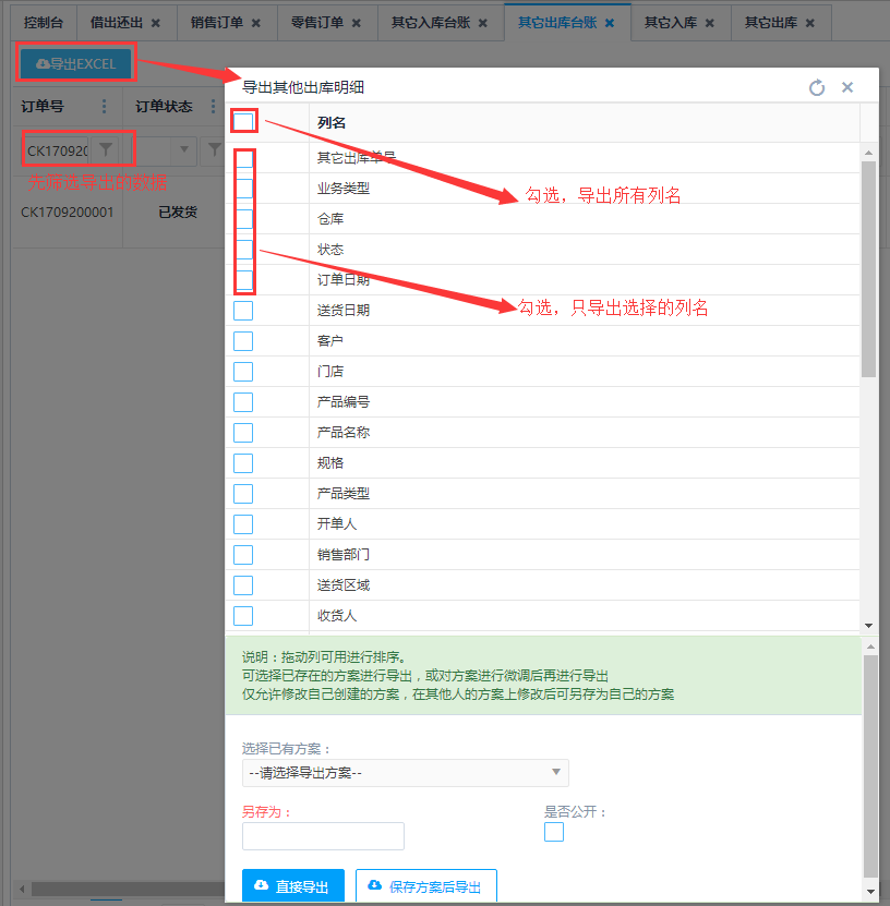 - 3.导出时选择需要导出的列名字段进行导出,导出后的文档只显示选择的列名数据。