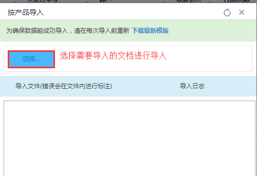 第二步:选择相应的模板导入销售退货单,例如:选择【按产品导入】,跳转到导入界面,然后点击【下载最新模板】,下载最新模板后按模版格式进行数据维护: