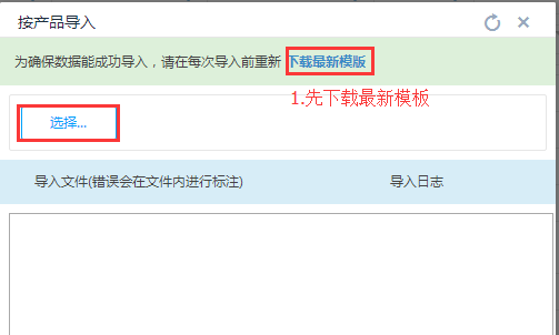 第一步:点击<导入>按钮,跳转到相应的导入模板界面: