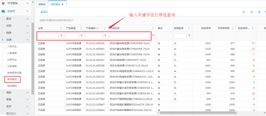 实物库存交易显示对库存有数量增减的交易单,可筛选后进行查询。