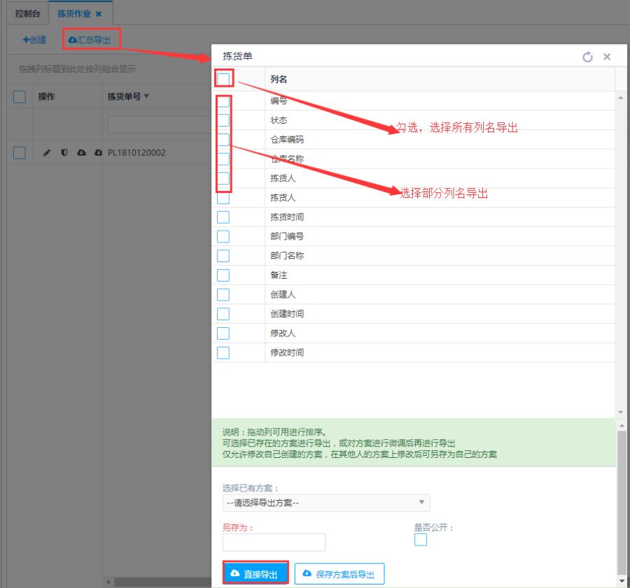 点击列表上方的<汇总导出>按钮可导出拣货作业列表内容。