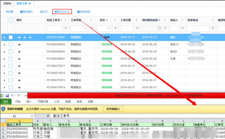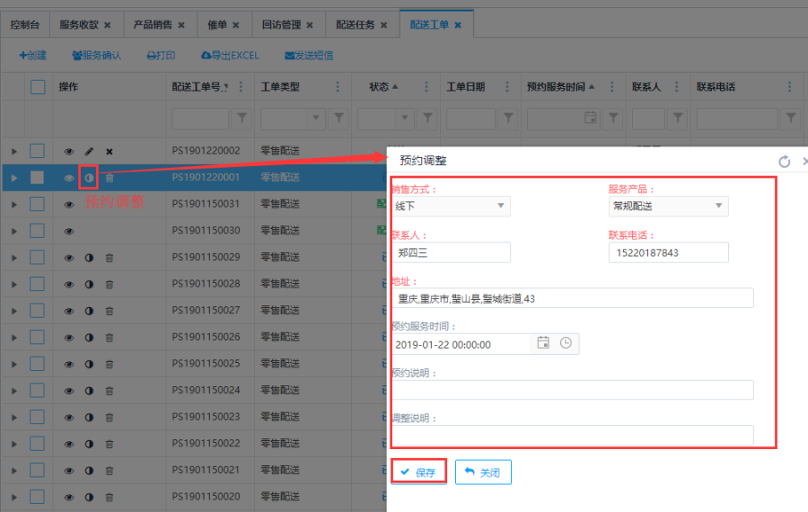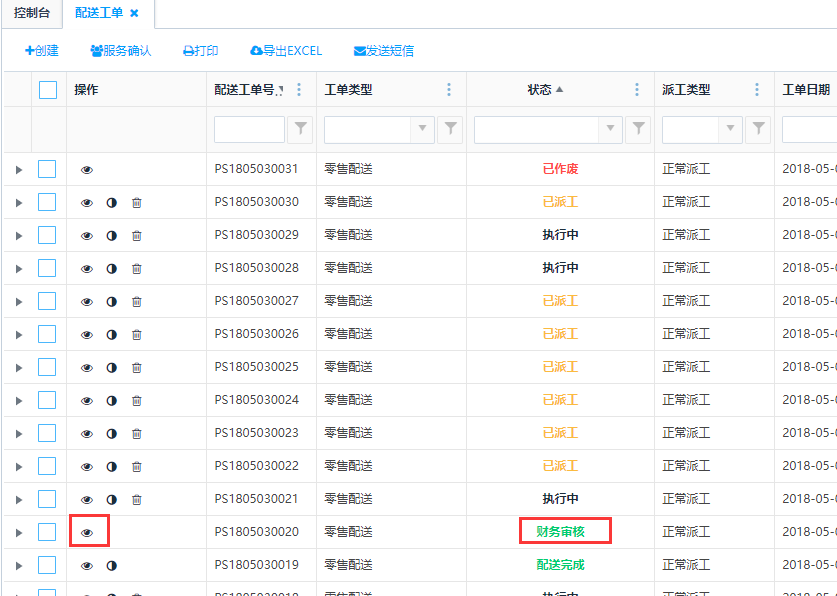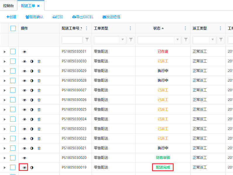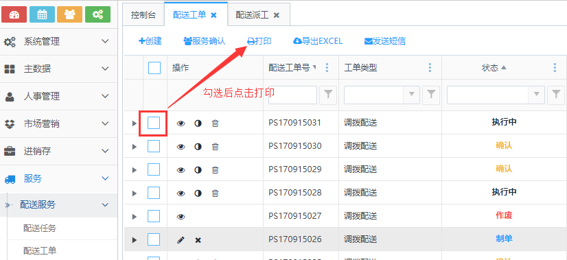 访问路径:服务—配送服务—配送工单