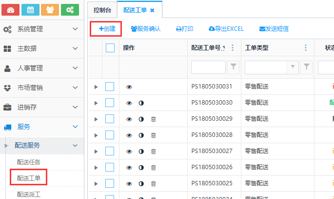 创建配送工单