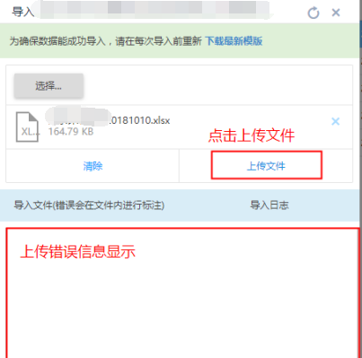 第二步:下载模板后,填写相应的数据,点击<选择>,选择保存的文件: