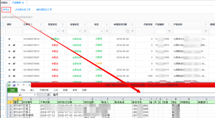 点击<导出>按钮可将列表里所有数据导出到EXCEL表里: