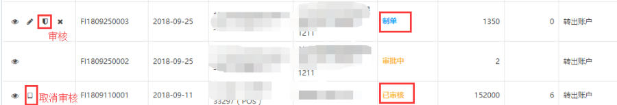 对于"制单"状态的订单,可对订单进行审核操作,点击列表左方操作栏的<审核>按钮,即可完成审核,审核完的订单状态转为"已审核",已审核订单不可以再进行编辑和删除的操作。