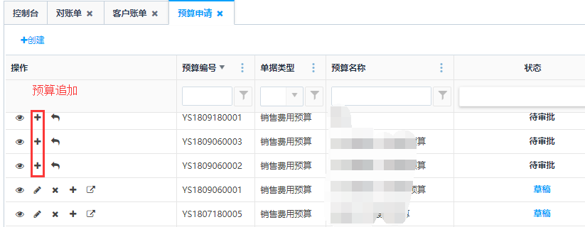 第一步:点击列表左上方<创建>按钮,进入预算申请的创建页面: