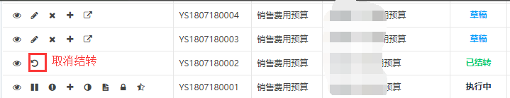 状态为"已结转"的预算申请单,点击列表操作栏的<取消结转>按钮,可对预算申请单进行取消结转操作