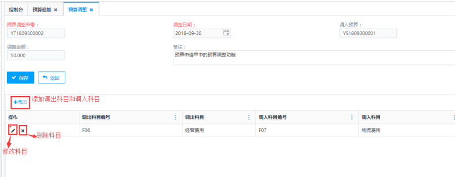 草稿状态下的预算调整单,点击<编辑>按钮,可以对预算调整单进行编辑操作。