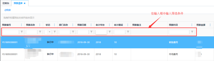 访问路径:财务—预算管理—预算清单