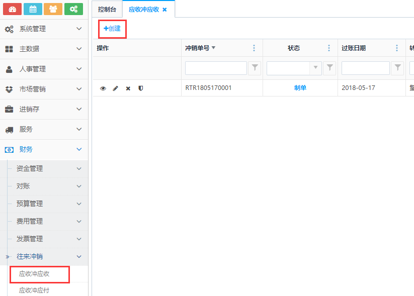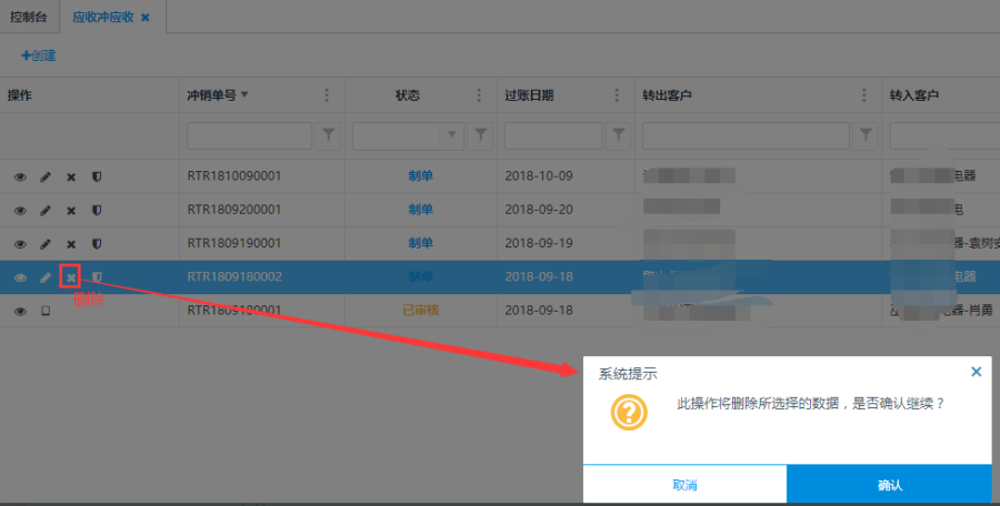 制单状态下的应收冲应收单,点击操作栏<删除>按钮可删除应收冲应收单。