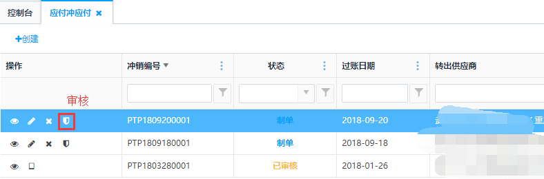 对制单状态的单据可进行审核操作,审核之后不能做编辑和删除操作。