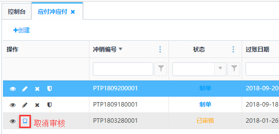 对已审核状态的单据可进行取消审核操作,取消审核之后可以做修改和删除操作。