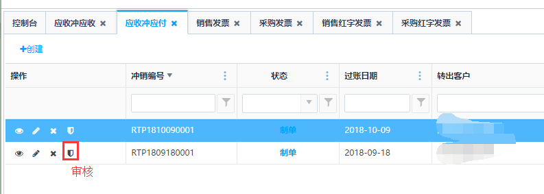 对制单状态的单据可进行审核操作,审核之后不能做编辑和删除操作。