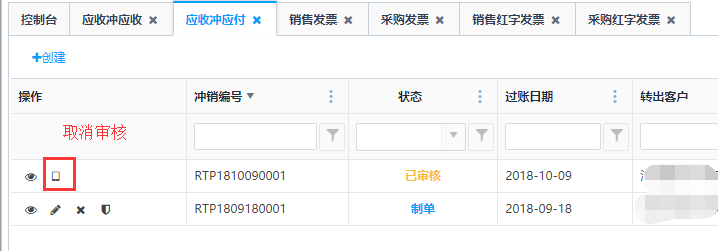 对已审核状态的单据可进行取消审核操作,取消审核之后可以做修改和删除操作。