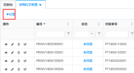 第一步:点击<创建>按钮,进入采购红字发票的创建页面: