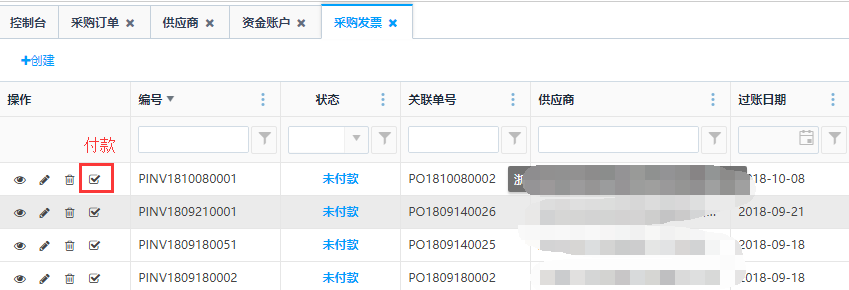 - 审核了采购付款单后,采购发票里的单据状态变为【部分付款】或【全额付款】。