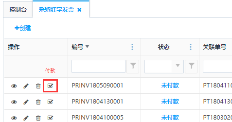 未付款状态下的采购红字发票单,点击操作栏<取消>按钮,可对采购发票单进行作废操作。取消后该订单会少一条记录。