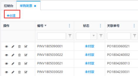 第一步:点击<创建>按钮,进入采购发票的创建页面:
