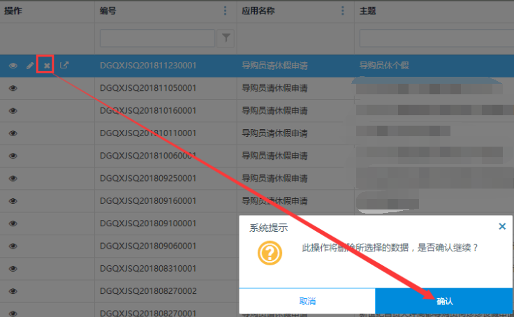 删除操作:草稿状态的自定义表单,点击操作栏的<删除>按钮,可删除表单。