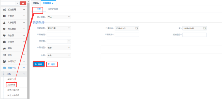 访问路径:报表中心—采购—采购明细