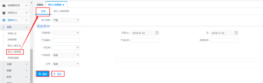 访问路径:报表中心—采购—其它入库明细