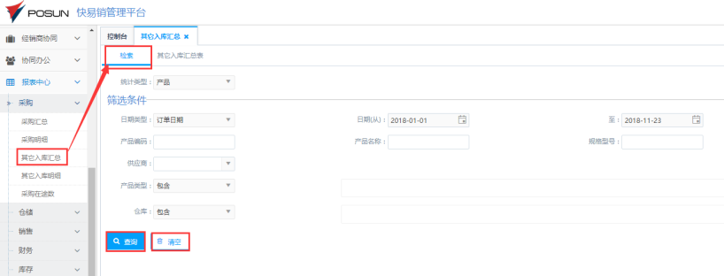 访问路径:报表中心—采购—其它入库汇总