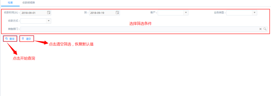 - 账户类型、收款方式:针对不同的账户类型和收款方式进行筛选;如:现金或电汇等方式