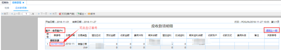 - 订单号:点击订单号可以查看该订单的应收款项详细信息。