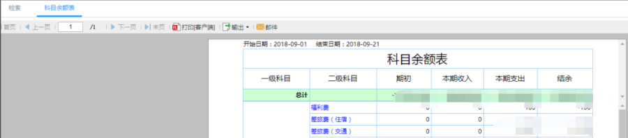访问路径:报表中心—财务—科目余额表