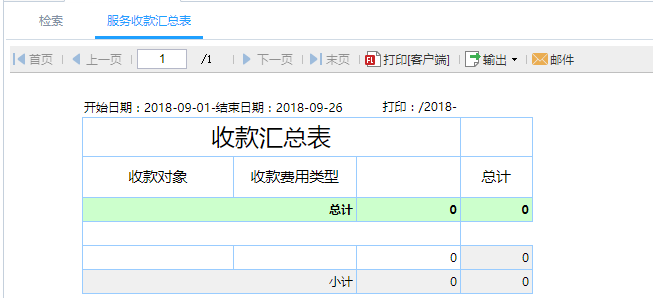 第二步:点击查询即可得到服务收款汇总表,针对收款对象进行统计分析。