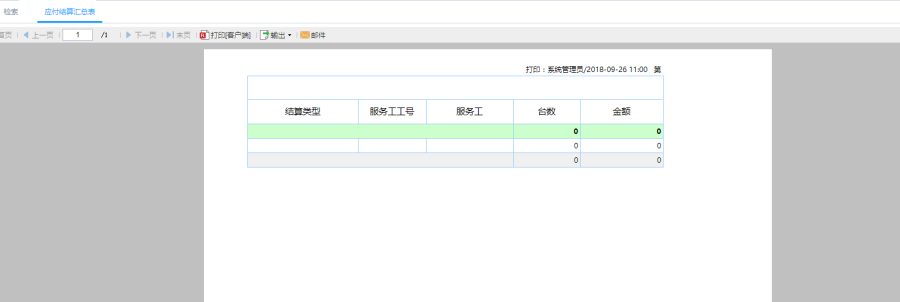 第二步:点击查询即可得到应付结算汇总表,根据结算类型统计服务工服务的台数以及金额。