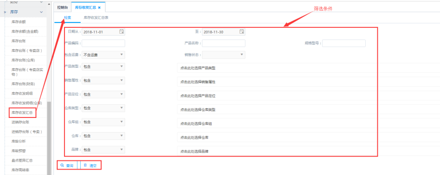 访问路径:报表中心—库存—库存收发汇总